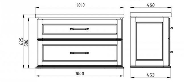 • Тумба с раковиной Венеция 100 (ш/в/г): 1010x625x455 мм