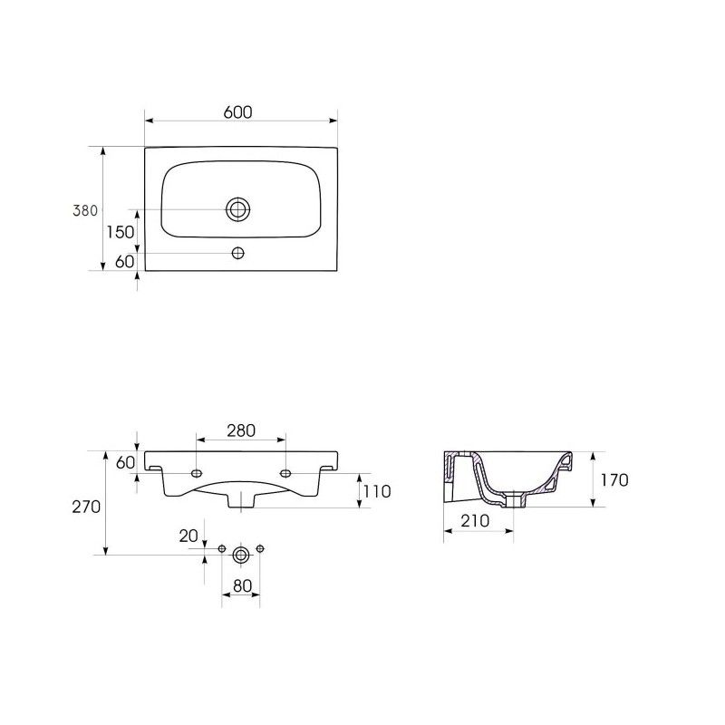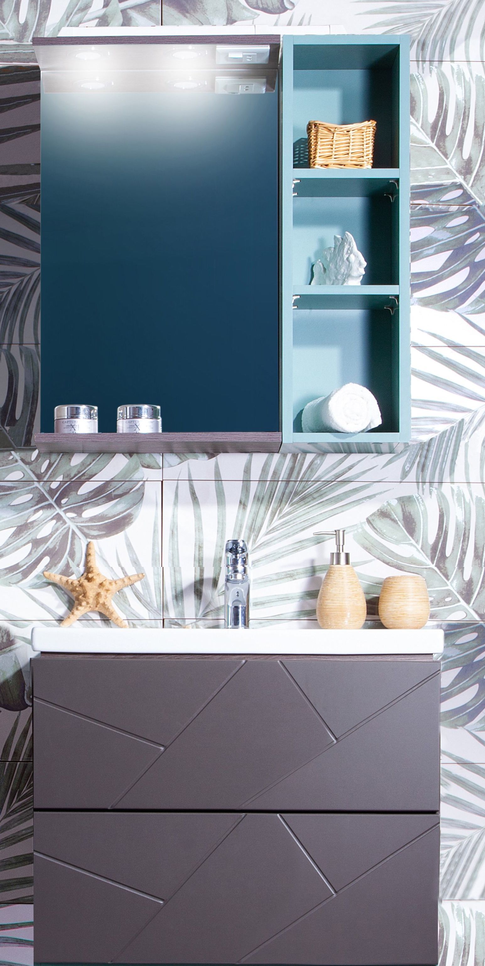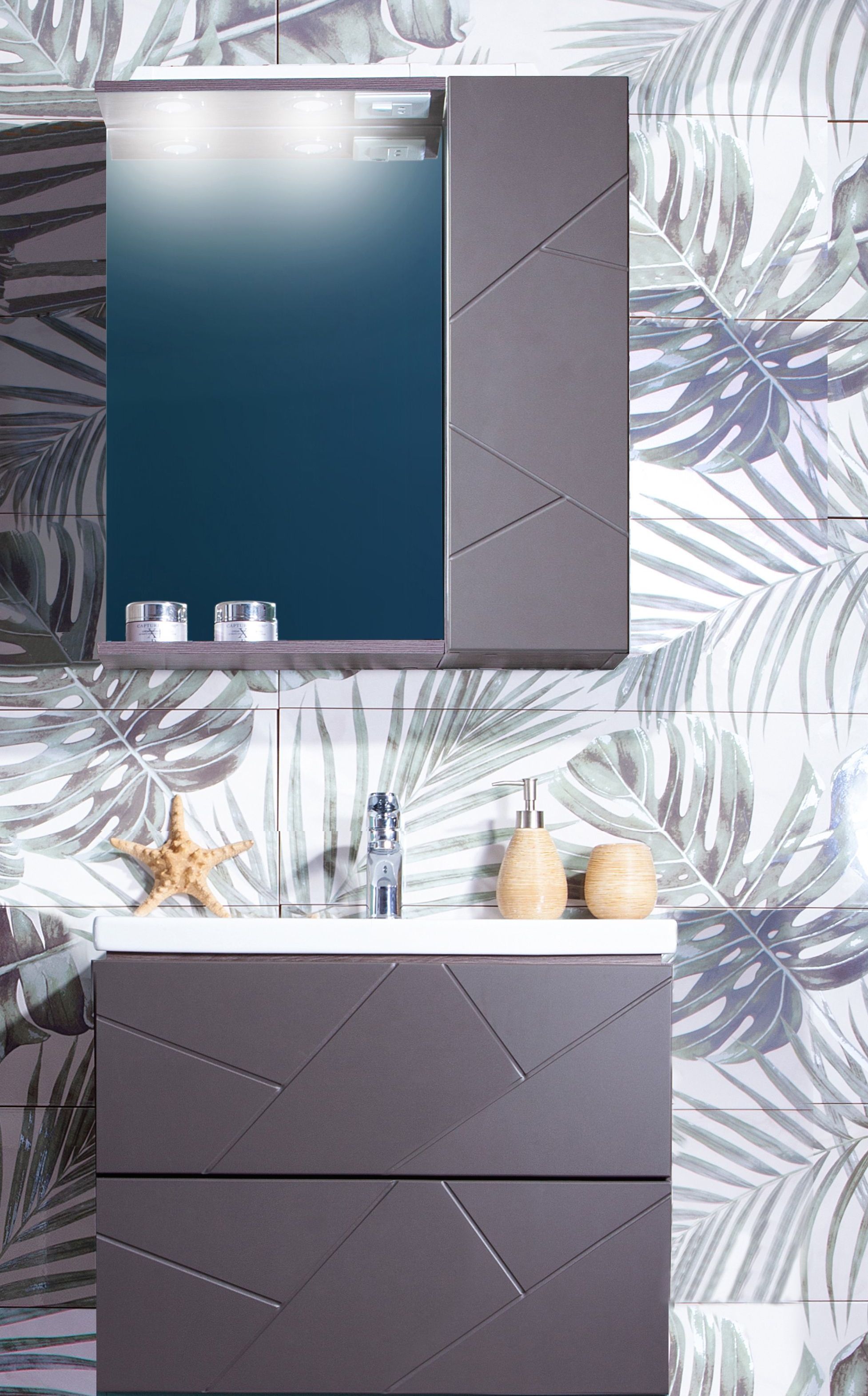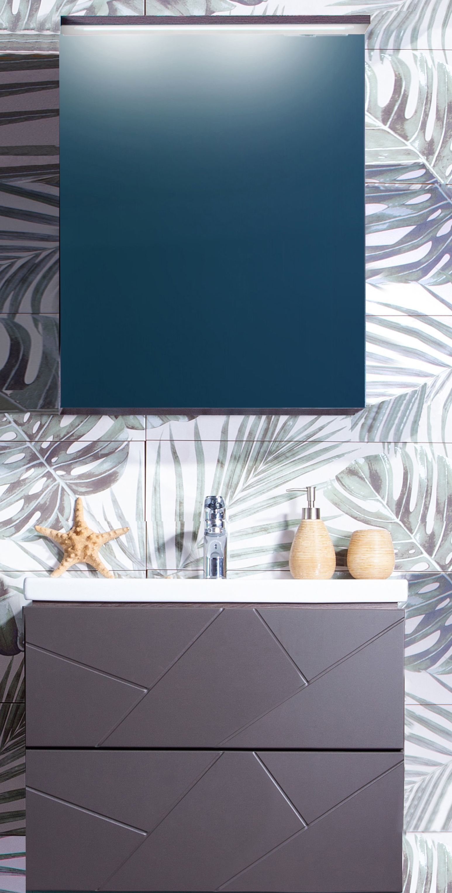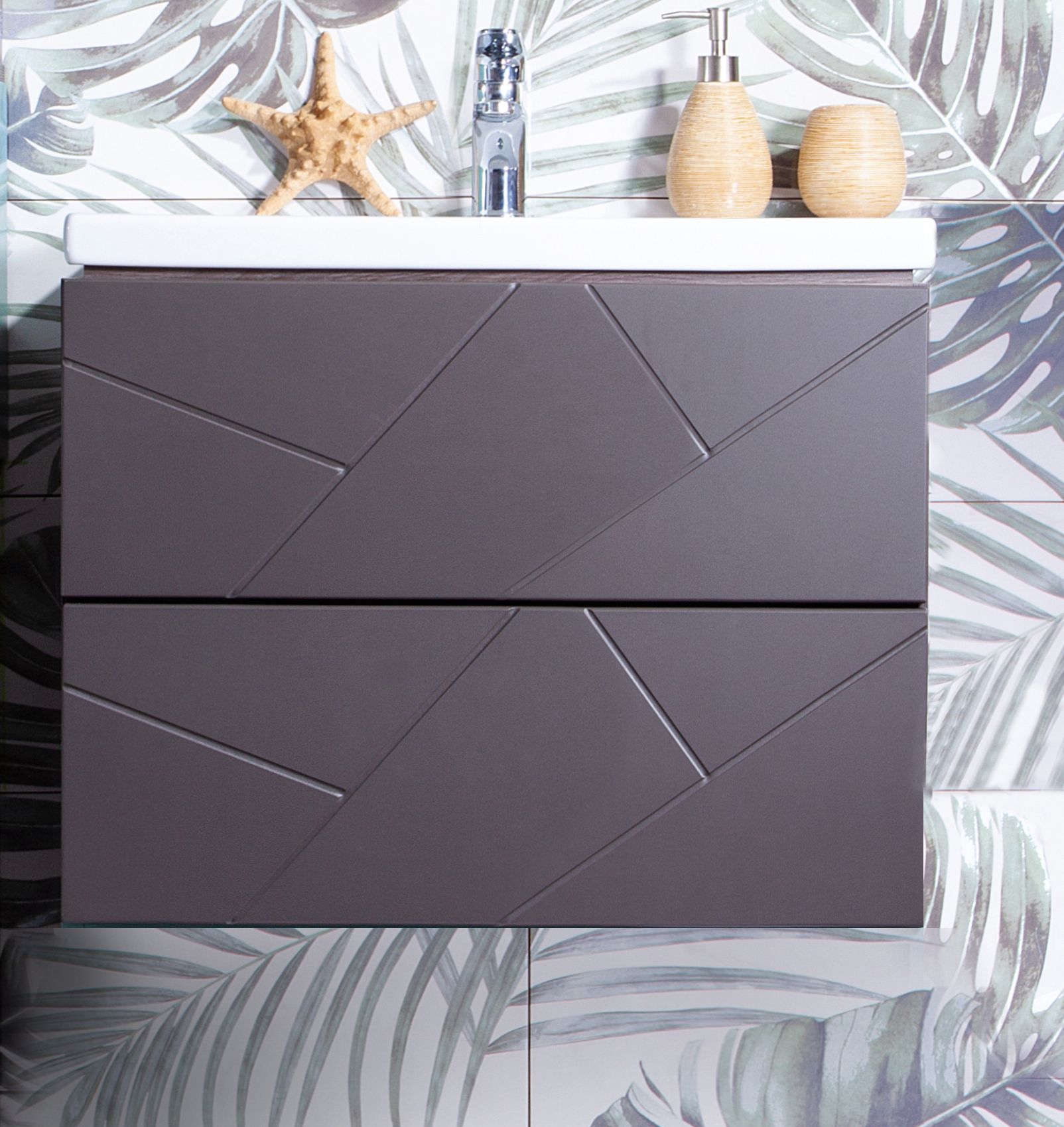 Тумба с раковиной Бриклаер Кристалл 60 без ниши, софт графит