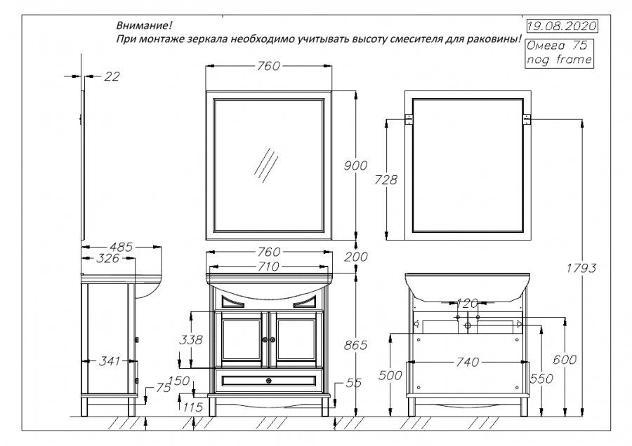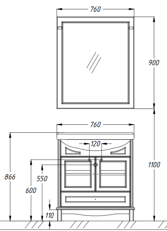 Тумба с раковиной Opadiris Омега 75 слоновая кость