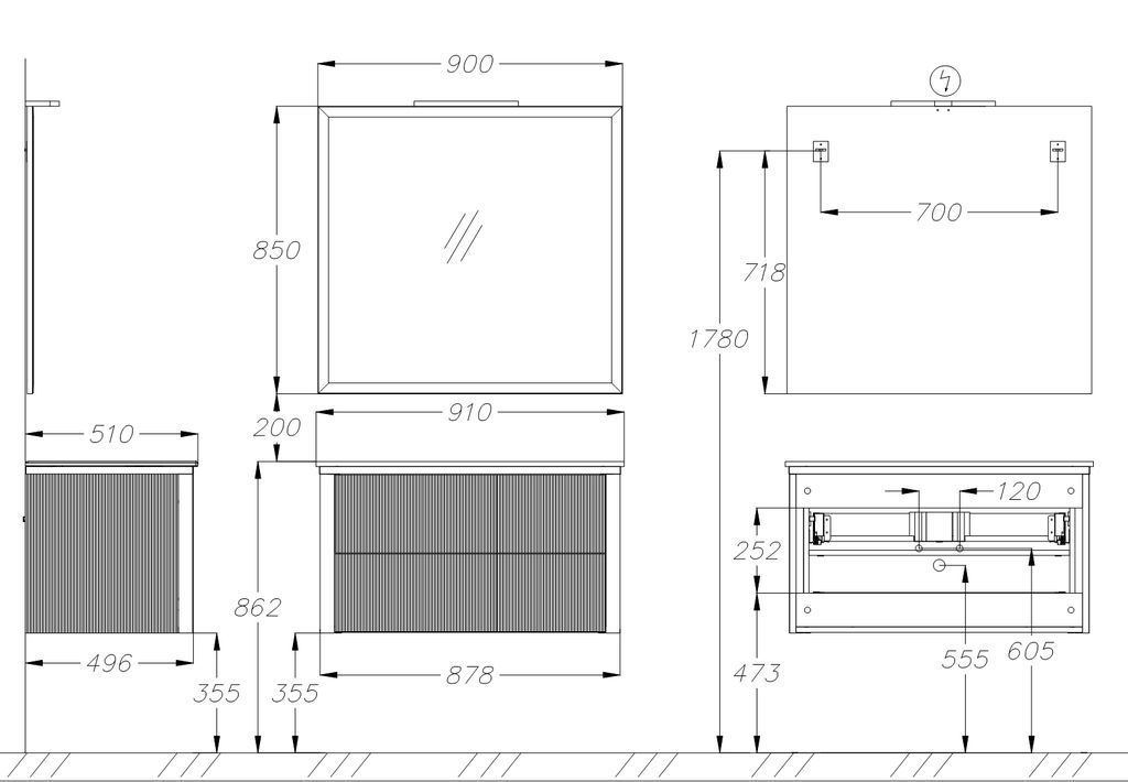Тумба с раковиной Opadiris Рубинно 90 подвесная серая