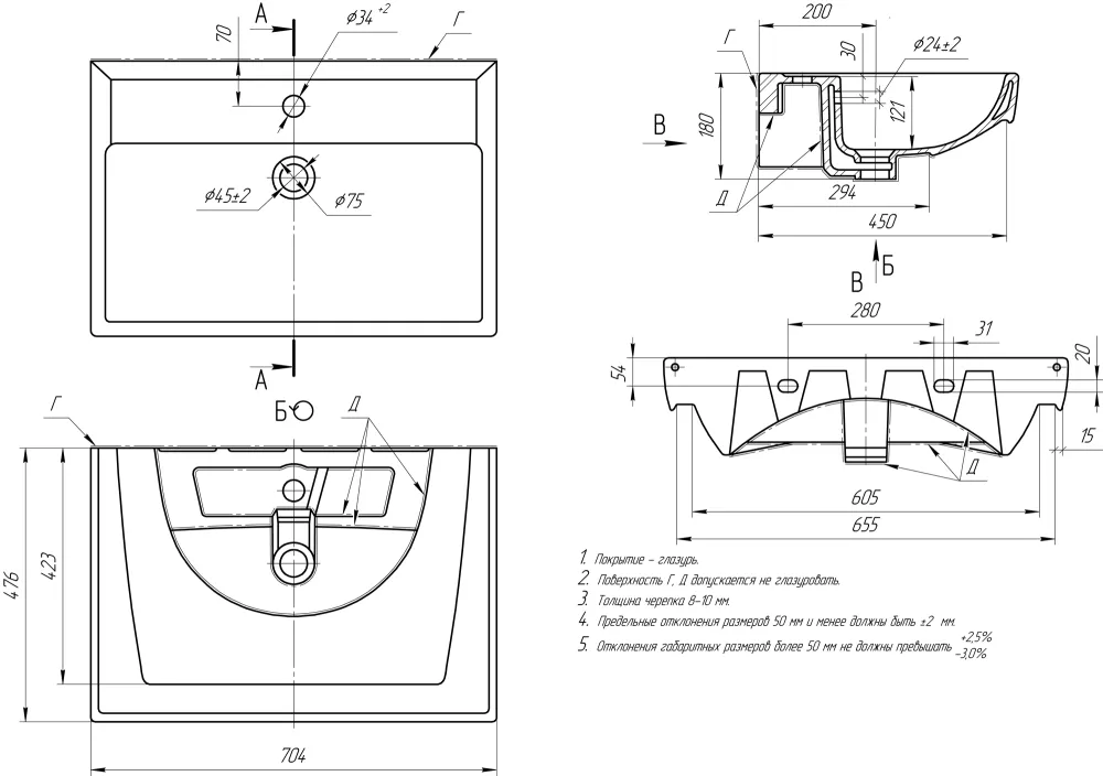• Керамическая раковина Dreja Q 70( ш/в/г): 704x180х476 мм