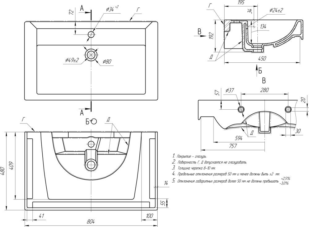 • Керамическая раковина Dreja Q 80( ш/в/г): 804x192х480 мм