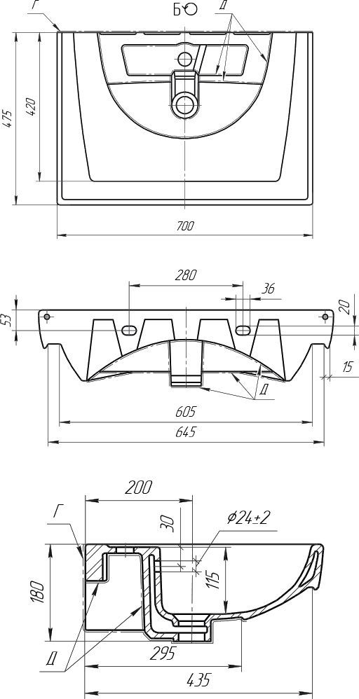 Тумба с раковиной Vod-ok Квадро 70 дуб