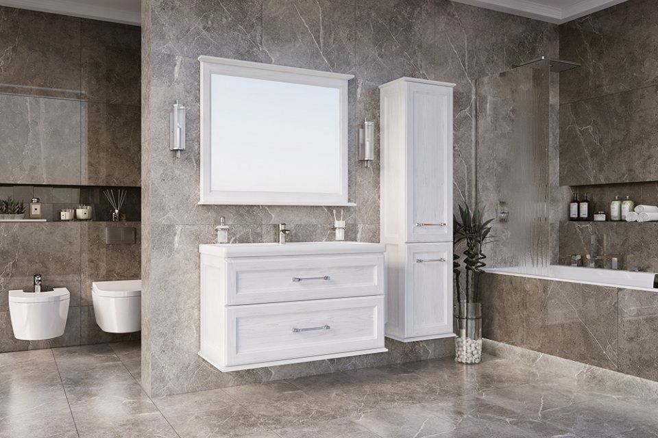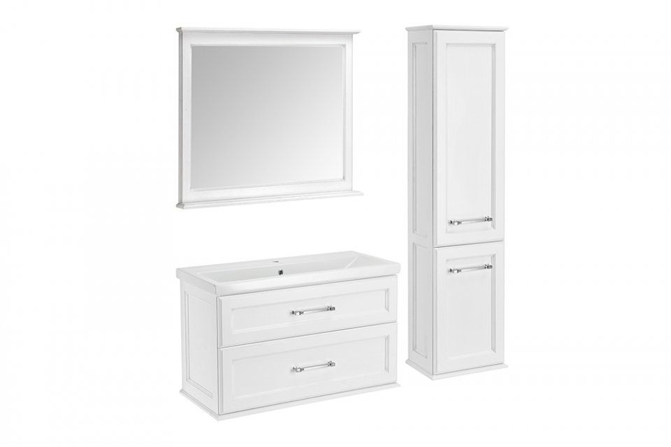 Зеркало ASB-Woodline Венеция 100 белое, патина серебро