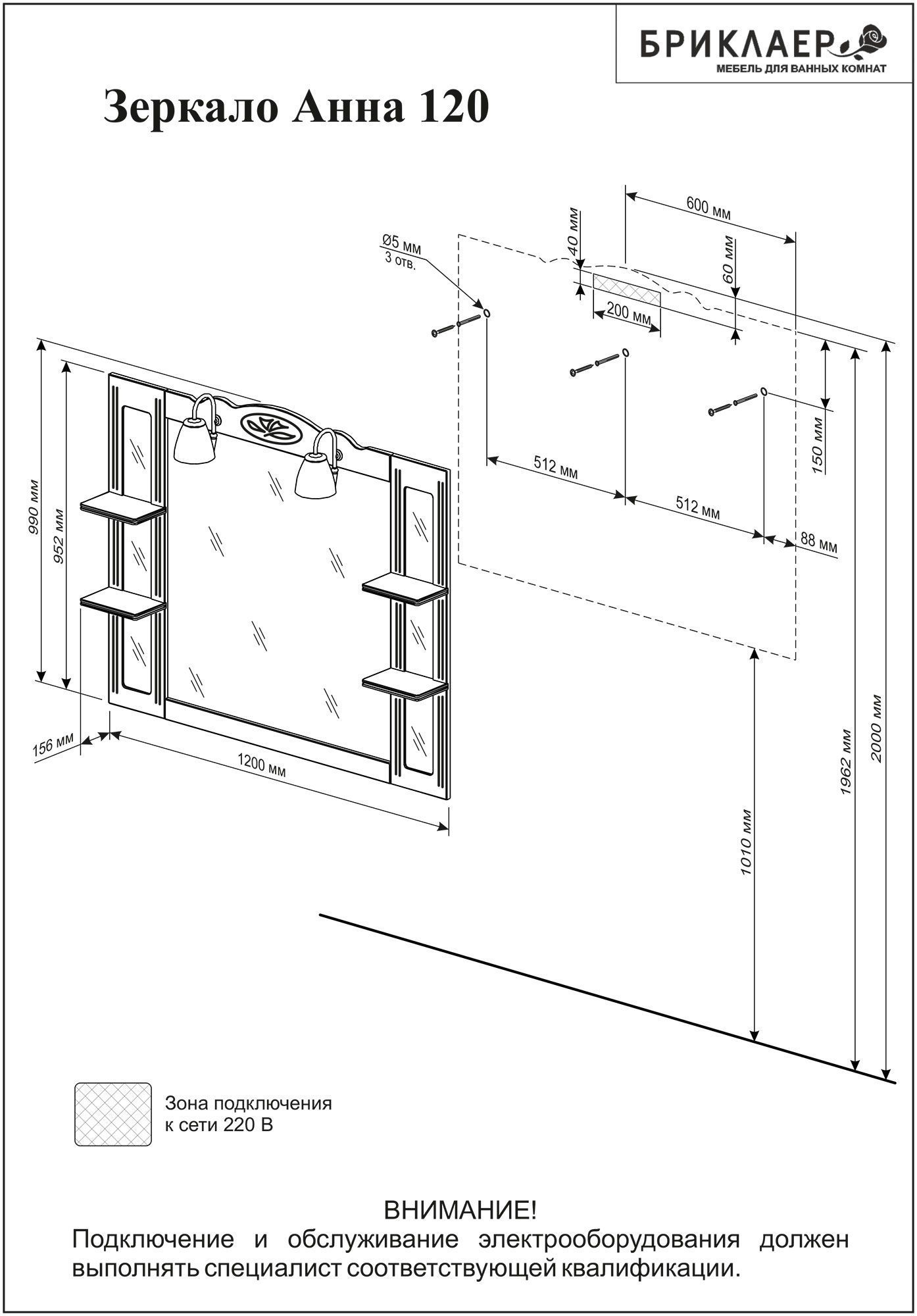 Зеркало Бриклаер Анна 120 белое