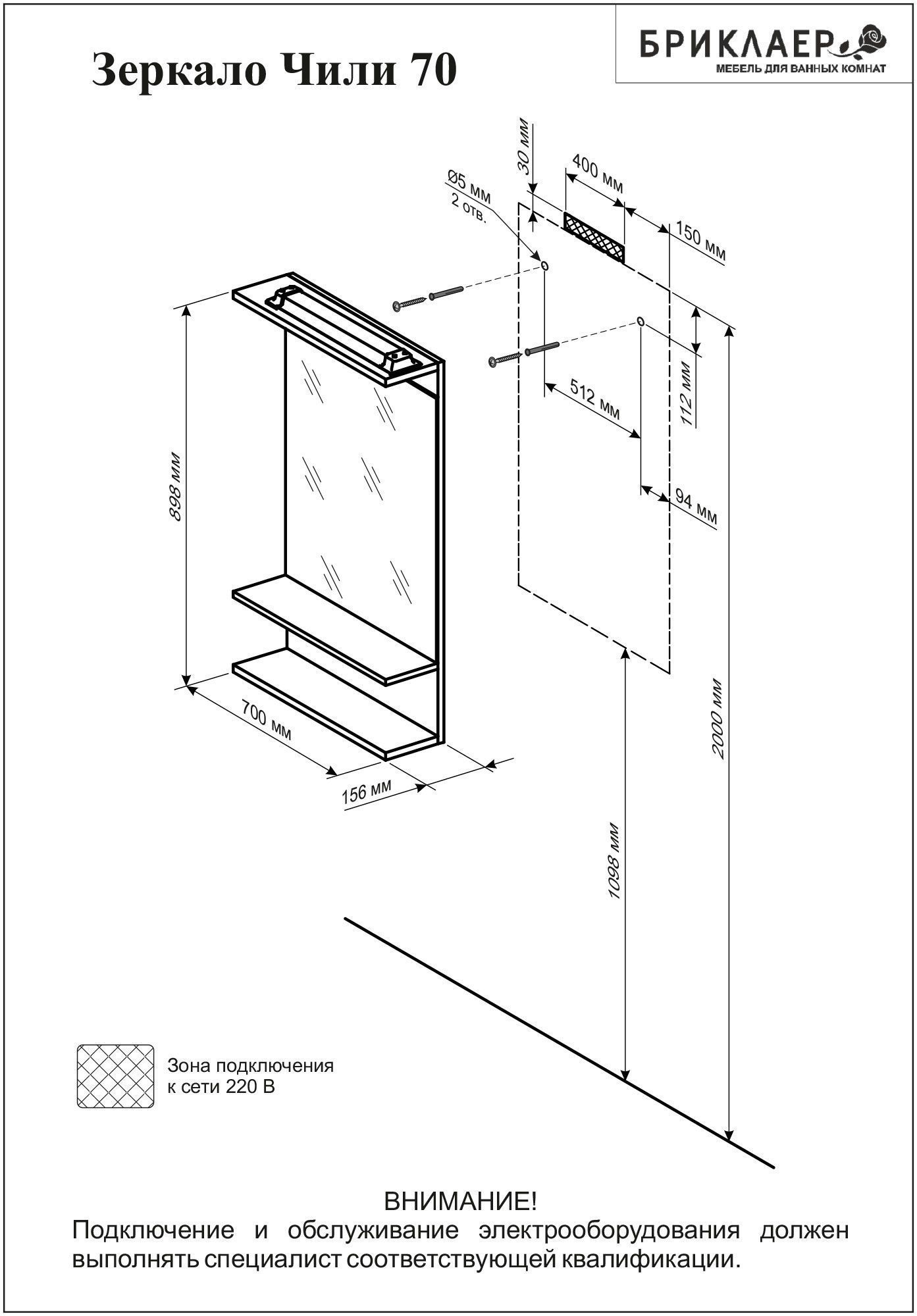 Зеркало Бриклаер Чили 70 светлая лиственница