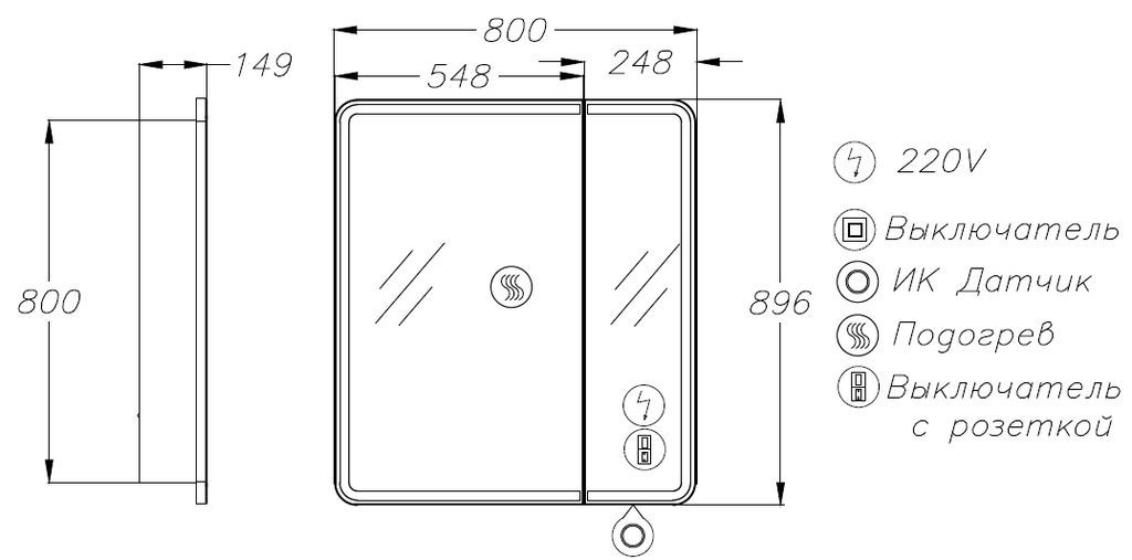 Зеркало-шкаф Opadiris Элеганс 80 с подсветкой